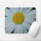 Schöne weisse Margerite mit gemusterter gelber Blütenmitte vor dunklem Hintergrund.
