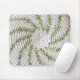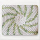 Spiral crochet in green, with white centre and background. This is a photographic image of a circular motif worked in crochet.