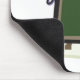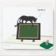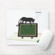 Mousepad for computer mouse, with humourous illustration of cat and mouse