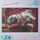 Beautiful and Cute Animal Pug sitting on velour couch Tissue paper. Perfect for all your decoupage projects and furniture transformation decoupage transferts.