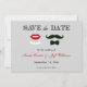 Moustache and Lips Grey Stripe Save the Date Cards
