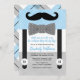 This cute moustache baby shower invitation for a boy is perfect for that new little man on his way! It also features a bow tie and suspenders in a blue, grey and black colour scheme.