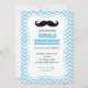 Sweet moustache birthday invitation with blue background. Perfect for first birthday invitation