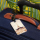 I was happy with the acrylic tag but it came with a thin leather strap to attach the tag to luggage (like a cat collar). I replaced the strap with a metal ring off of a key ring as the leather strap would come undone or break easily as luggage is sometimes handled without much care by airlines. Printing is great. Colours and positioning of the design I put on the tag were perfect. Very pleased.