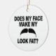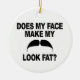 The phrase "Does my face make my moustache look fat?" with the word "moustache" replaced by an image of a big black moustache.