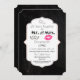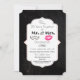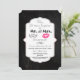 A wedding anniversary invitation with a trendy design - glamourous pink kissy lips and a masculine retro-looking moustache illustration. With the words Mr. and Mrs. Set on a black chalkboard background. A fancy decorative frame with a gold gradient border layered over top with your party information inside. Personalise with your anniversary party details.