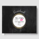 A wedding guestbook with a modern design - glamourous pink kissy lips and a masculine retro-looking moustache illustration. Set on a black chalkboard background with a gold gradient circular frame in the centre. Text says Mr. and Mrs. and you can personalise with your names and wedding date.