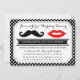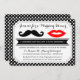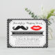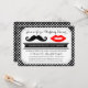 These moustache and lips themed wedding shower invites are retro hipster cute! Invites feature moustache and lips, calligraphy, modern typography, a ribbon flag, and an ornate frame over a chic black and white polka dots pattern background.