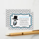 Invite your guests to bring a book for the little man's library! This book request insert has a outline of a classic gentleman with a top hat, a moustache, tuxedo and bow tie. Background of grey and white chevron background. Personalise with your book request information.