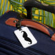I was happy with the acrylic tag but it came with a thin leather strap to attach the tag to luggage (like a cat collar). I replaced the strap with a metal ring off of a key ring as the leather strap would come undone or break easily as luggage is sometimes handled without much care by airlines. Printing is great. Colours and positioning of the design I put on the tag were perfect. Very pleased.