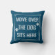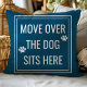 Move Over The Dog Sits Here Funny Pet Throw Pillow. This animal pillow is accented with paw prints and a cute quote. Personalise this custom design with your own quote or text.
