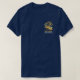 Behind the tee is the gold logo with the business name in gold beside it. Below the logo are your contact details.
