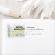 "Moved! Make Note!" return address label template created to personalise with new address. Features a colour pencil rendering of lawn mowing.