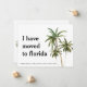 If you're planning a move to Florida, here is a moving announcement card that will get the notice of your family and friends. Three tropical palm trees, bold typography saying "I have moved to Florida," plus your name and new address on the front of the card tell your news in a way that can't be missed. All text on front and back of the card can also be personalised with your new address and other contact information.