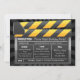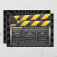 Movie clapper clap board party invitation is great for a movie night, new film screening, girls movie star night, kids birthday party or other social gathering centred around hollywood and the movie production industry. Awesome Movie Night Party Custom Invitations, in black, white, yellow . Classy black and white rays of light in the background Customise the clapboard chalk board with your party info. Makes a great, unique party invitation for the birthday boy, girl, or any occasion!