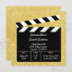 Modern and eye-catching sweet sixteen birthday invitation. This card is ideal for a Hollywood movie star theme. It features a movie director clapboard with the party details. The background has a faux golden glitter pattern. Fun design for a charismatic girl with a sense of glamour.