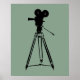 A sage green and black pop art poster featuring a film camera on a tripod. A luddite delight!