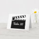 This card design features a black and white slate clapperboard that you'd find used on a movie or TV set, used to indicate the start of a 'take'; the filming of a scene and used to allow sound and video to be synchronised at the editing stage.