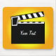 This design features a black and white slate clapperboard that you'd find used on a movie or TV set, used to indicate the start of a 'take'; the filming of a scene and used to allow sound and video to be synchronised at the editing stage.