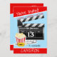 Movie Clapboard Popcorn 13th Birthday Party Invitation, with easy templates to personalise this thirteenth birthday invite with all your party details.
