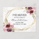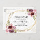 Modern and Elegant Floral Faux Gold Foil Geometric Watercolor Spring Burgundy and Blush Pink Floral Flowers I've Moved New Home or New Address cards - includes beautiful and elegant script typography with modern floral and greenery for the special New Home or New Address celebration.