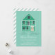 Let your friends and family know you have moved with this beautifully designed announcement. This card has a beautiful green house decorated with holiday wreaths against a light green background.
