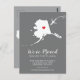 Modern moving announcement featuring the state of ALASKA , with a red heart & aeroplane set on a grey background. The background colour can be changed easily by clicking personalise and then click to customise further to view our colour picker. From there you can also move the aeroplane & heart! Contact our shop if you require help or need another state.