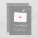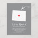 Modern moving announcement featuring the state of COLORADO, with a red heart & aeroplane set on a grey background. The background colour can be changed easily by clicking personalise and then click to customise further to view our colour picker. From there you can also move the aeroplane & heart! Contact our shop if you require help or need another state.