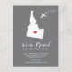 Modern moving announcement featuring the state of IDAHO, with a red heart & aeroplane set on a grey background. The background colour can be changed easily by clicking personalise and then click to customise further to view our colour picker. From there you can also move the aeroplane & heart! Contact our shop if you require help or need another state.