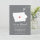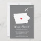 Modern moving announcement featuring the state of IOWA with a red heart & aeroplane set on a grey background. The background colour can be changed easily by clicking personalise and then click to customise further to view our colour picker. From there you can also move the aeroplane & heart! Contact our shop if you require help or need another state.
