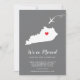 Modern moving announcement featuring the state of KENTUCKY with a red heart & aeroplane set on a grey background. The background colour can be changed easily by clicking personalise and then click to customise further to view our colour picker. From there you can also move the aeroplane & heart! Contact our shop if you require help or need another state.