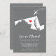 Modern moving announcement featuring the state of MARYLAND with a red heart & aeroplane set on a grey background. The background colour can be changed easily by clicking personalise and then click to customise further to view our colour picker. From there you can also move the aeroplane & heart! Contact our shop if you require help or need another state.