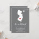 Modern moving announcement featuring the state of NEW JERSEY with a red heart & aeroplane set on a grey background. The background colour can be changed easily by clicking personalise and then click to customise further to view our colour picker. From there you can also move the aeroplane & heart! Contact our shop if you require help or need another state.