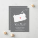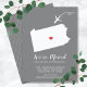 Modern moving announcement featuring the state of Pennsylvania with a red heart & airplane set on a gray background. The background color can be changed easily by clicking personalize and then click to customize further to view our color picker. From there you can also move the airplane & heart! Contact our shop if you require help or need another state.