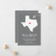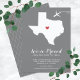 Modern moving announcement featuring the state of Texas with a red heart & aeroplane set on a grey background. The background colour can be changed easily by clicking personalise and then click to customise further to view our colour picker. From there you can also move the aeroplane & heart! Contact our shop if you require help or need another state.