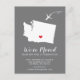 Modern moving announcement featuring the state of WASHINGTON, with a red heart & aeroplane set on a grey background. The background colour can be changed easily by clicking personalise and then click to customise further to view our colour picker. From there you can also move the aeroplane & heart! Contact our shop if you require help or need another state.