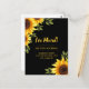 Rustic country-style moving announcement/change of address postcard with bright yellow and brown sunflowers on a black. Text says, "I've moved" and includes your address. Text is fully customizable.