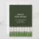 New home announcement with white picket fence and grass.