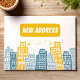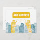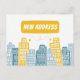 Moving announcement with yellow buildings postcard
