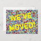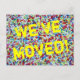 Moving postcard with colourful candy sprinkles texture. Custom move text; We have moved! Add your new address on the back. Modern photo cards for new home or business location.