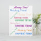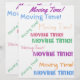 Colourful Moving Time typography. Same design printed on both sides.