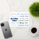 Moving Time typography - some words are printed with real foil and some are printed with standard ink.