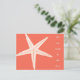 Tropical beach living, new address postcard announcement. Cute for a single gal, this bright orange card with a single, large starfish on the front, has vertical text for a modern look.