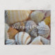 Pretty textured seashells moving postcard. Announce a move to a coastal area or beach condo. "We have moved" text on the front is easy to change for a single person. Customise text on the back with name(s) and new address over a shimmering water image.