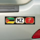 Bumper sticker displaying an attractive combination of the Mozambican flag, map and 2 letter country code.