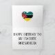 Beautiful design includes happy balloons and ticker tapes with the words "Happy Birthday", covered in the colours of the Mozambique flag. Design is finished with the heart in the Mozambique flag colours and the Birthday message. Elements are fully customisable using "Customise it!" feature. This colourful birthday card is the perfect present for your friend from Mozambique. © 2024 CountriesOfTheWorld