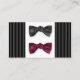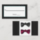 This black and grey pinstriped design with a black satin and a red satin bow tie design is understated and elegant. Easily customised.