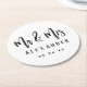 Mr and Mrs Black Brushed Script Wedding Round Paper Coaster
