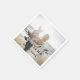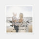 Wedding napkins feature "Mr. and Mrs." in an elegant black calligraphy script font with custom monogram text that can be personalised with the bride and groom's married last name and wedding date. An engagement photo can also be included as the background image.