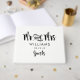 Modern wedding guestbook features a modern black and white colour scheme with bold and playful handwritten calligraphy script typography with stylish scroll details. Personalise the casual yet elegant custom Mr. and Mrs. Monogram text with wedding date for your guests.